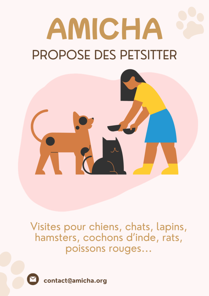 Amicha propose des visites à domicile pour chiens, chats, ou autres animaux de compagnie.